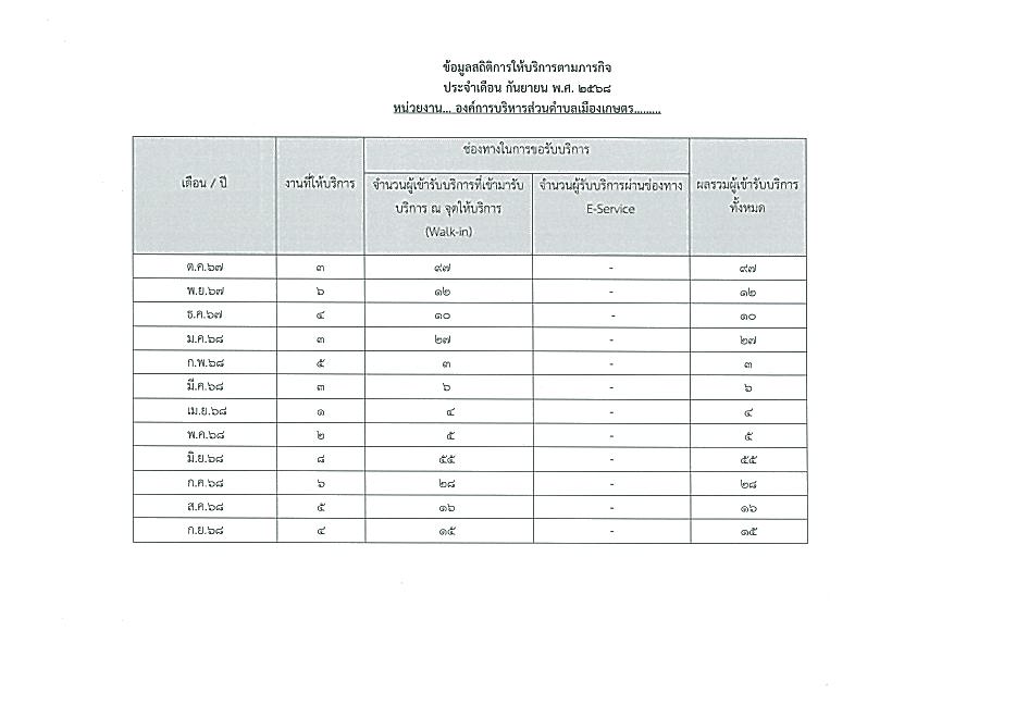 ข้อมูลเชิงสถิติการให้บริการประชาชนของ อบต.เมืองเกษตร ประจำเดือน กันยายน 2568