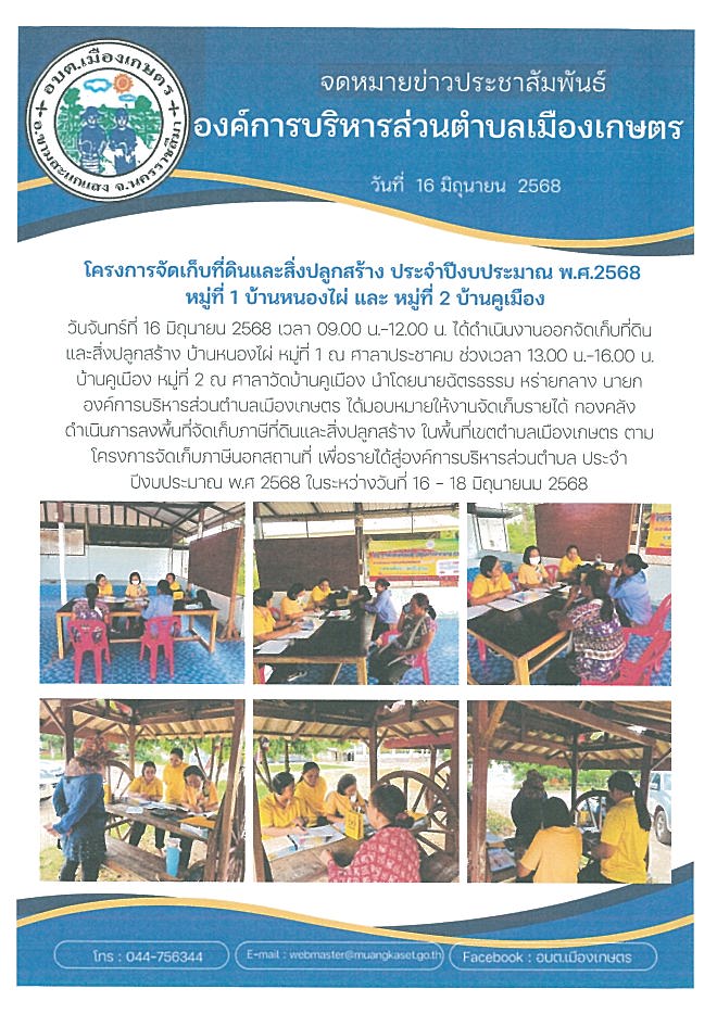 โครงการ"การจัดเก็บภาษีนอกสถานที่ให้บริการประชาชนนอกเวลาราชการ" ประจำปีงบประมาณ 2568