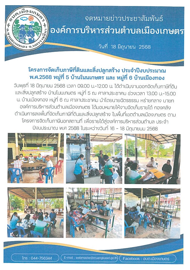 โครงการ"การจัดเก็บภาษีนอกสถานที่ให้บริการประชาชนนอกเวลาราชการ" ประจำปีงบประมาณ 2568