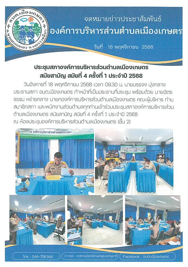 ประชุมสภาองค์การบริหารส่วนตำบลเมืองเกษตร สมัยสามัญ สมัยที่ 4 ครั้งที่ 1 ประจำปี 2568