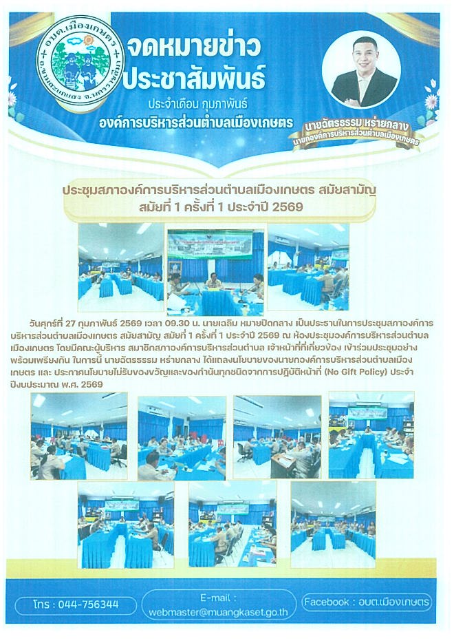 ประชุมสภาองค์การบริหารส่วนตำบลเมืองเกษตร สมัยสามัญ สมัยที่ 1 ครั้งที่ 1 ประจำปี 2569