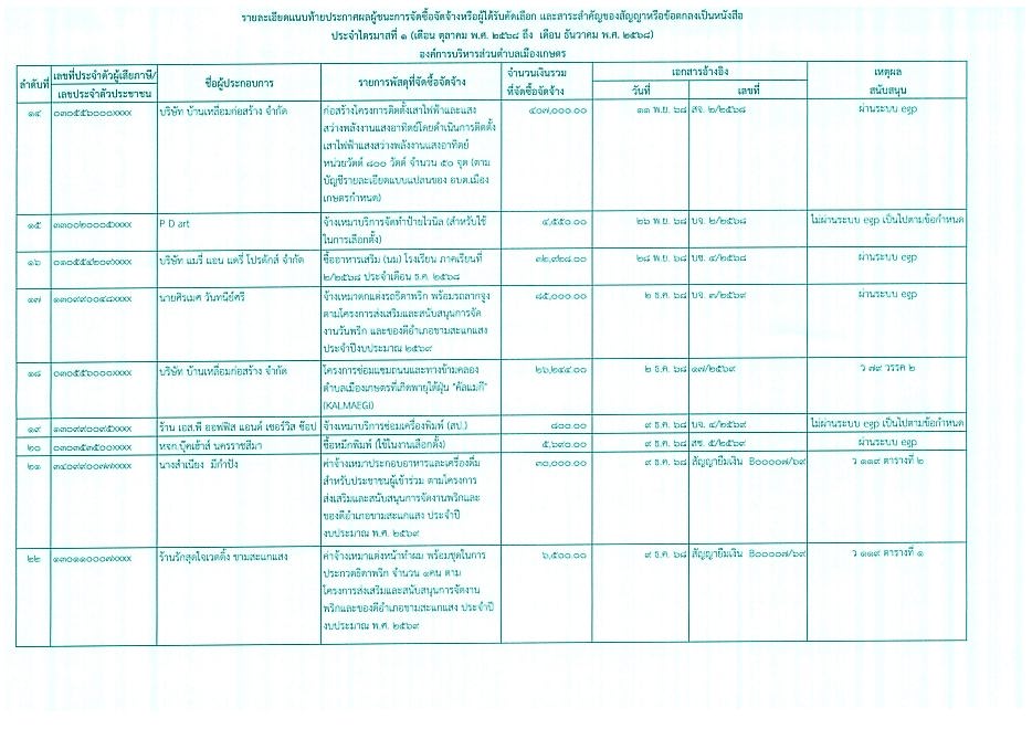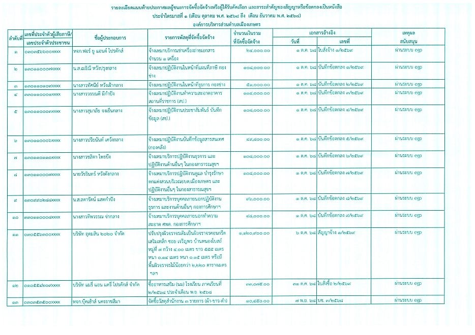 ประกาศผลผู้ชนะการจัดซื้อจัดจ้างหรือผู้ได้รับการคัดเลือกและสาระสำคัญของสัยญาหรือข้อตกลงเป็นหนังสือ ประจำไตรมาสที่ 1 (ต.ค.68-ธ.ค.68)