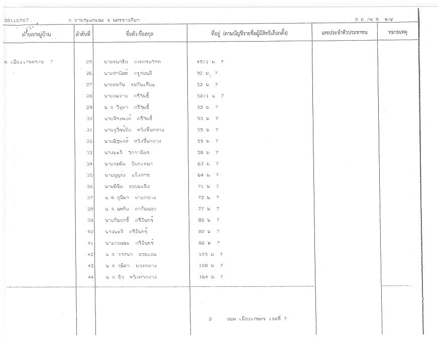 ประกาศบัญชีรายชื่อผู้มีสิทธิเลือกตั้งที่ไม่ไปใช้สิทธิเลือกตั้งและมิได้แจ้งเหตุที่ไม่อาจไปใช้สิทธิเลือกตั้งหรือแจ้งเหตุที่ไม่อาจไปใช้สิทธิเลือกตั้งแล้วแต่เหตุนั้นมิใช่เหตุอันสมควร เขตเลือกตั้งที่ 7