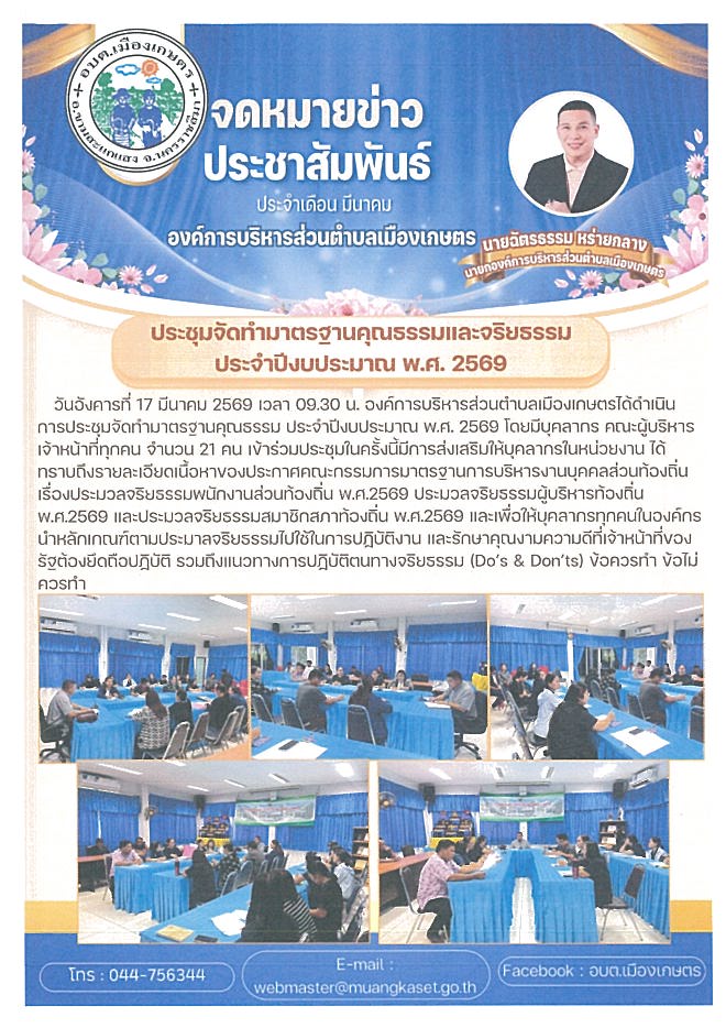 ประชุมจัดทำมาตรฐานคุณธรรมและจริยธรรมปีงบประมาณ 2569