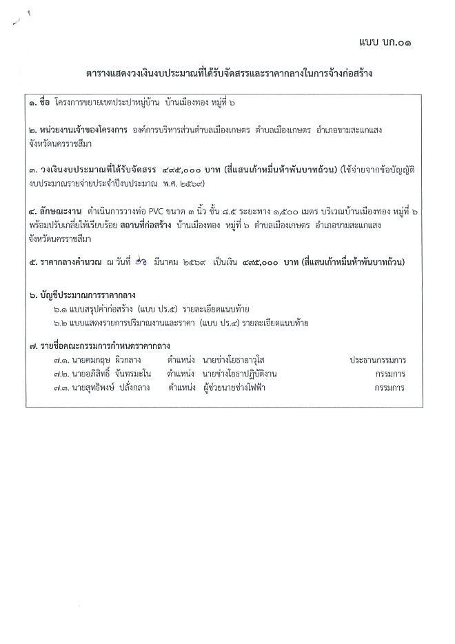 ประกาศราคากลางโครงการขยายเขตประปาหมู่บ้าน บ้านเมืองทอง หมู่ที่ 6 ตำบลเมืองเกษตร โดยวิธีเฉพาะเจาะจง