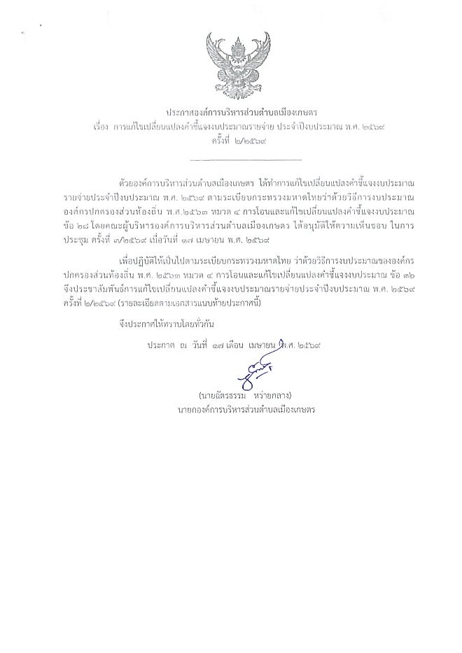 ประกาศ การแก้ไขเปลี่ยนแปลงคำชี้แจ้งงบประมาณรายจ่าย ประจำปีงบประมาณ พ.ศ.2569 ครั้งที่ 2/2569