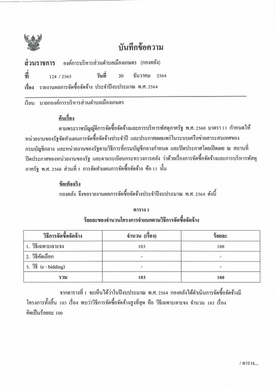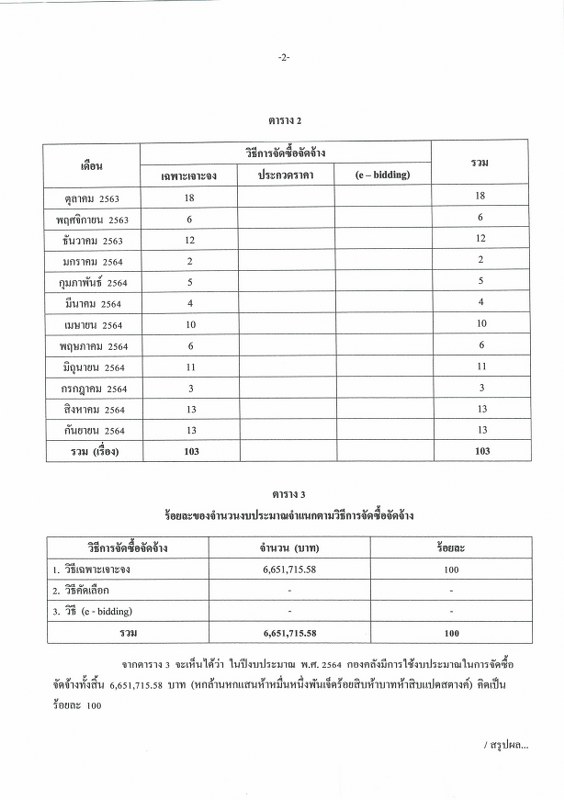รายงานผลการจัดซื้อจัดจ้างที่หรือจัดหาพัสดุ พ.ศ. 2564
