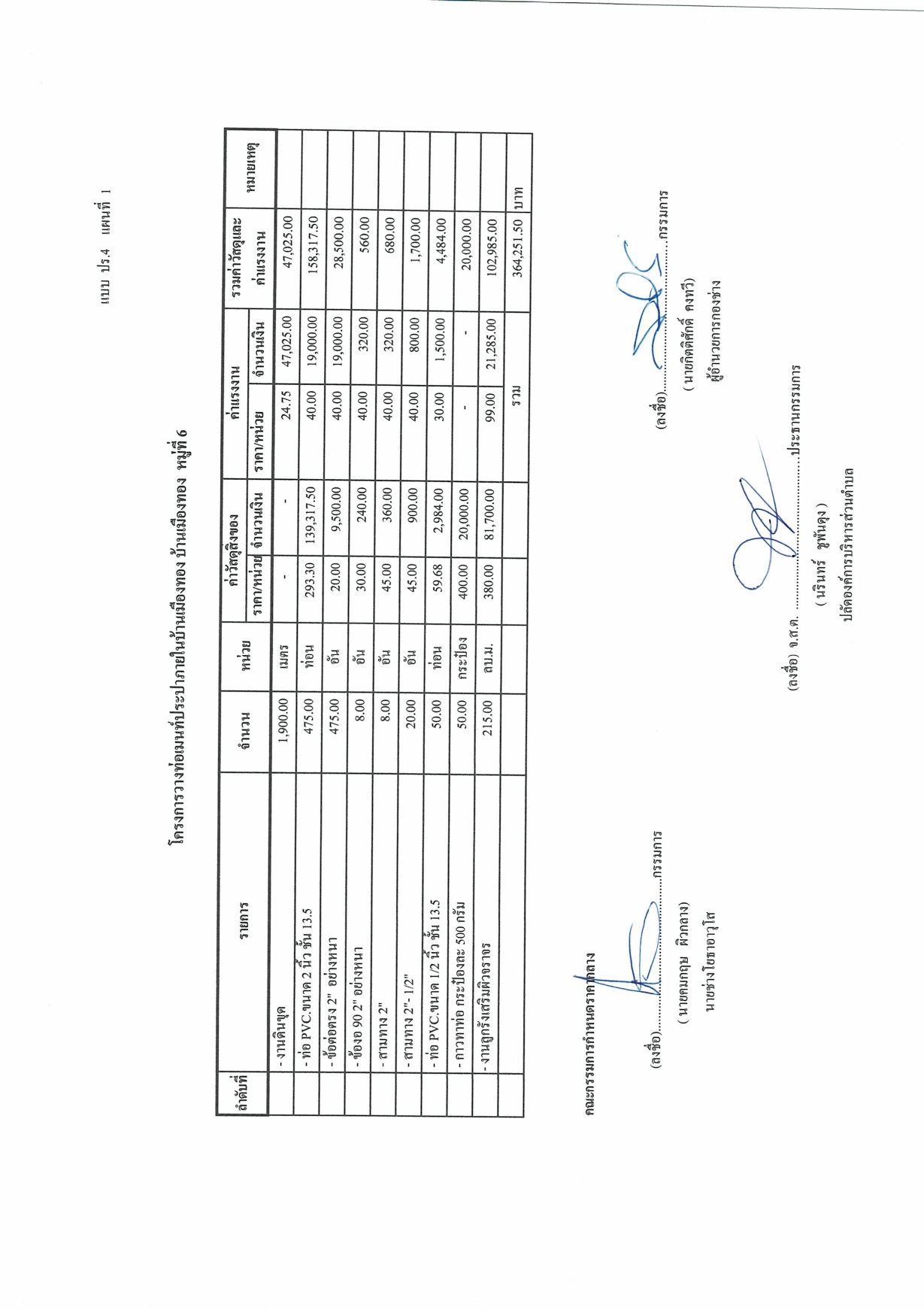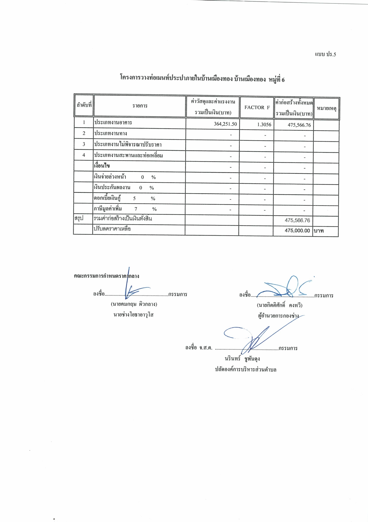 ราคากลาง โครงการวางท่อเมนท์ประปาภายในบ้านเมืองทอง หมู่ที่ 6