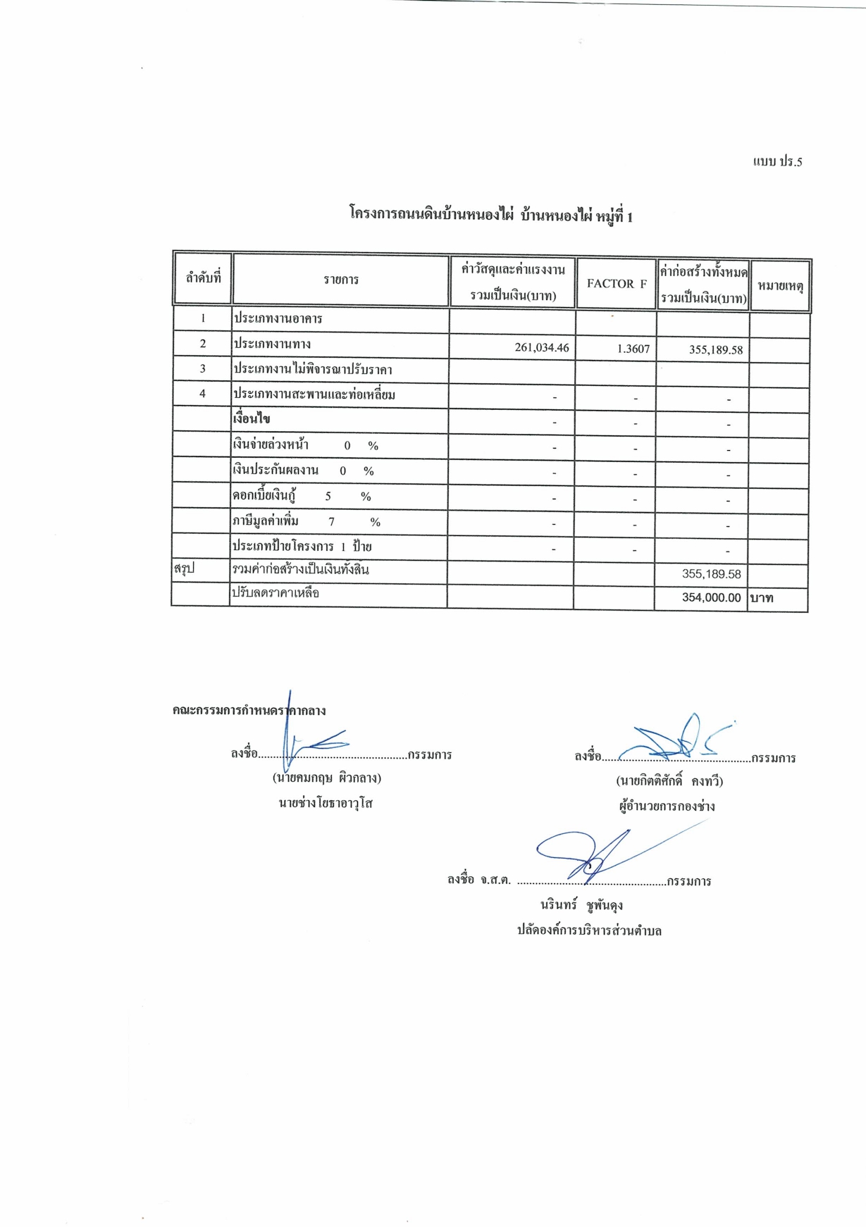 ราคากลาง โครงการถนนดินบ้านหนองไผ่ บ้านหนองไผ่ หมู่ที่ 1
