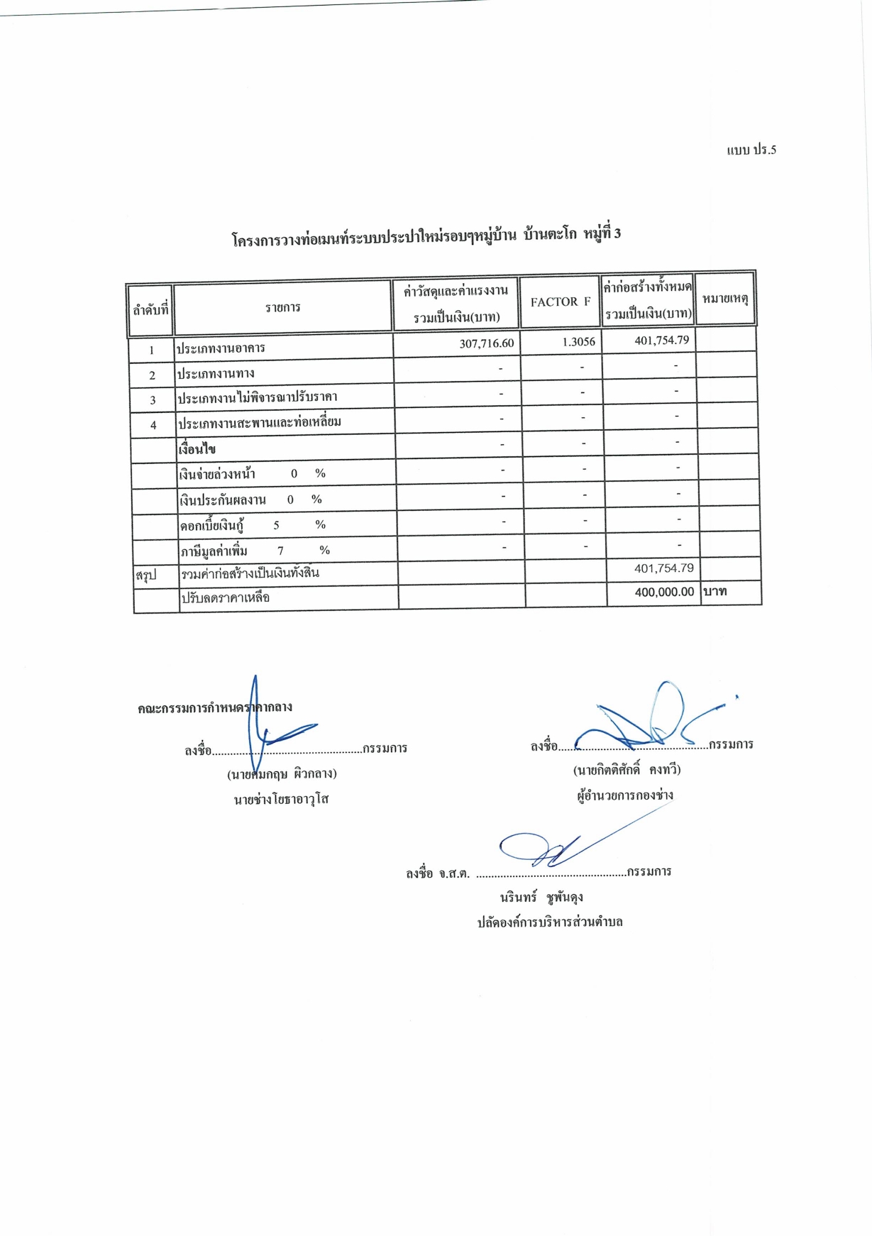 ราคากลาง โครงการวางท่อเมนท์ระบบประปาใหม่รอบ ๆ หมู่บ้าน บ้านตะโก หมู่ 3