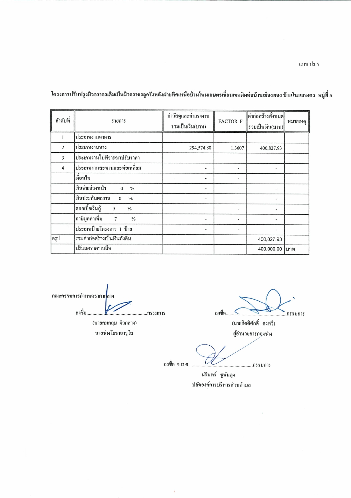 ราคากลาง โครงการโครงการปรับปรุงผิวจราจรเดิมเป็นผิวจราจรลูกรังฯ บ้านโนนเกษตร ม.5