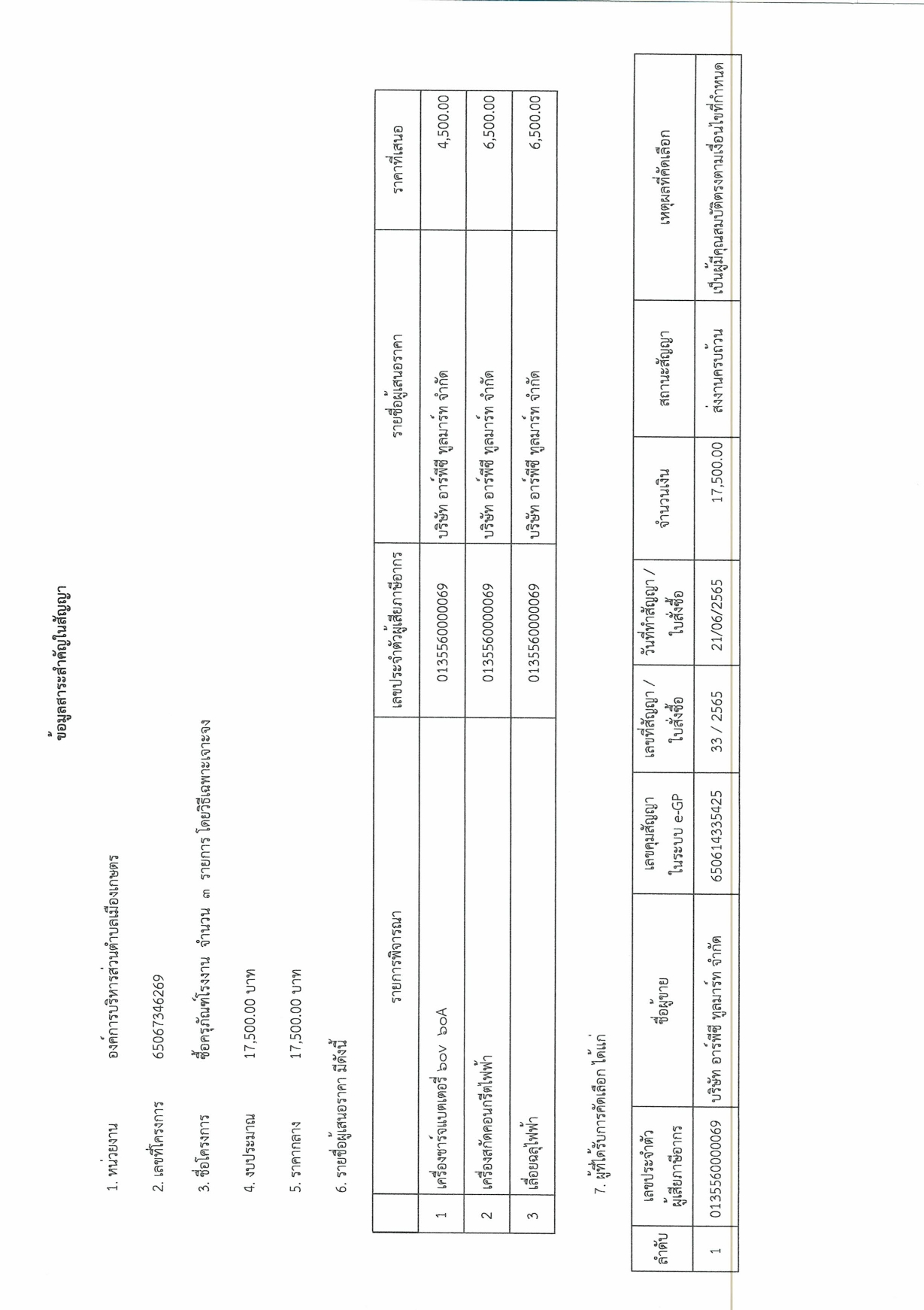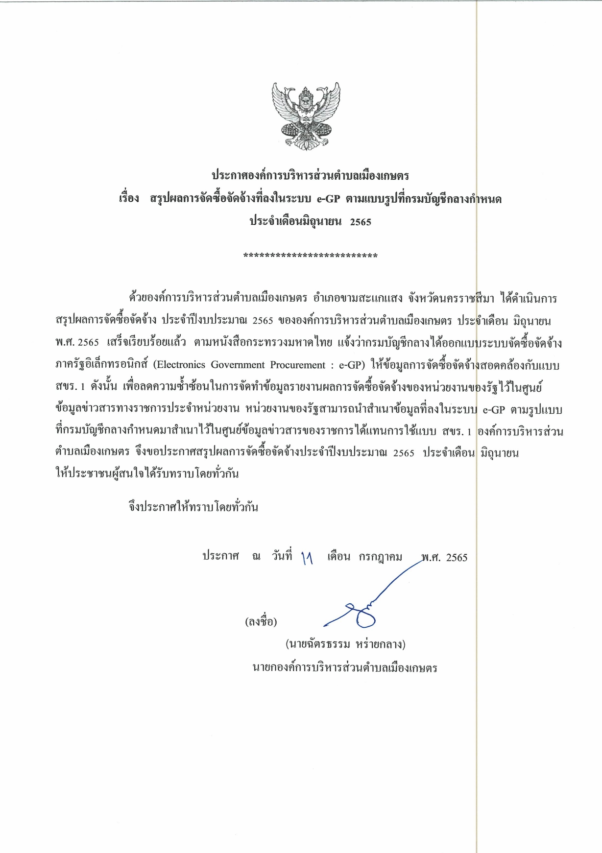 ผลการจัดซื้อจัดจ้างที่ลงระบบ e-GP ประจำเดือนมิถุนายน พ.ศ.๒๕๖๕