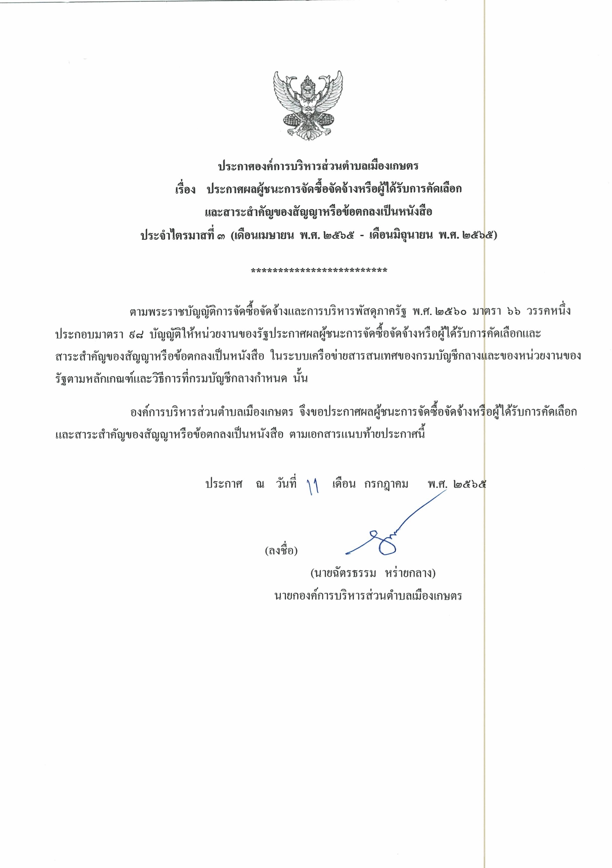 ประกาศผลผู้ชนะการจัดซื้อจัดจ้าง ประจำไตรมาสที่ ๓ ประจำปีงบประมาณ ๒๕๖๕