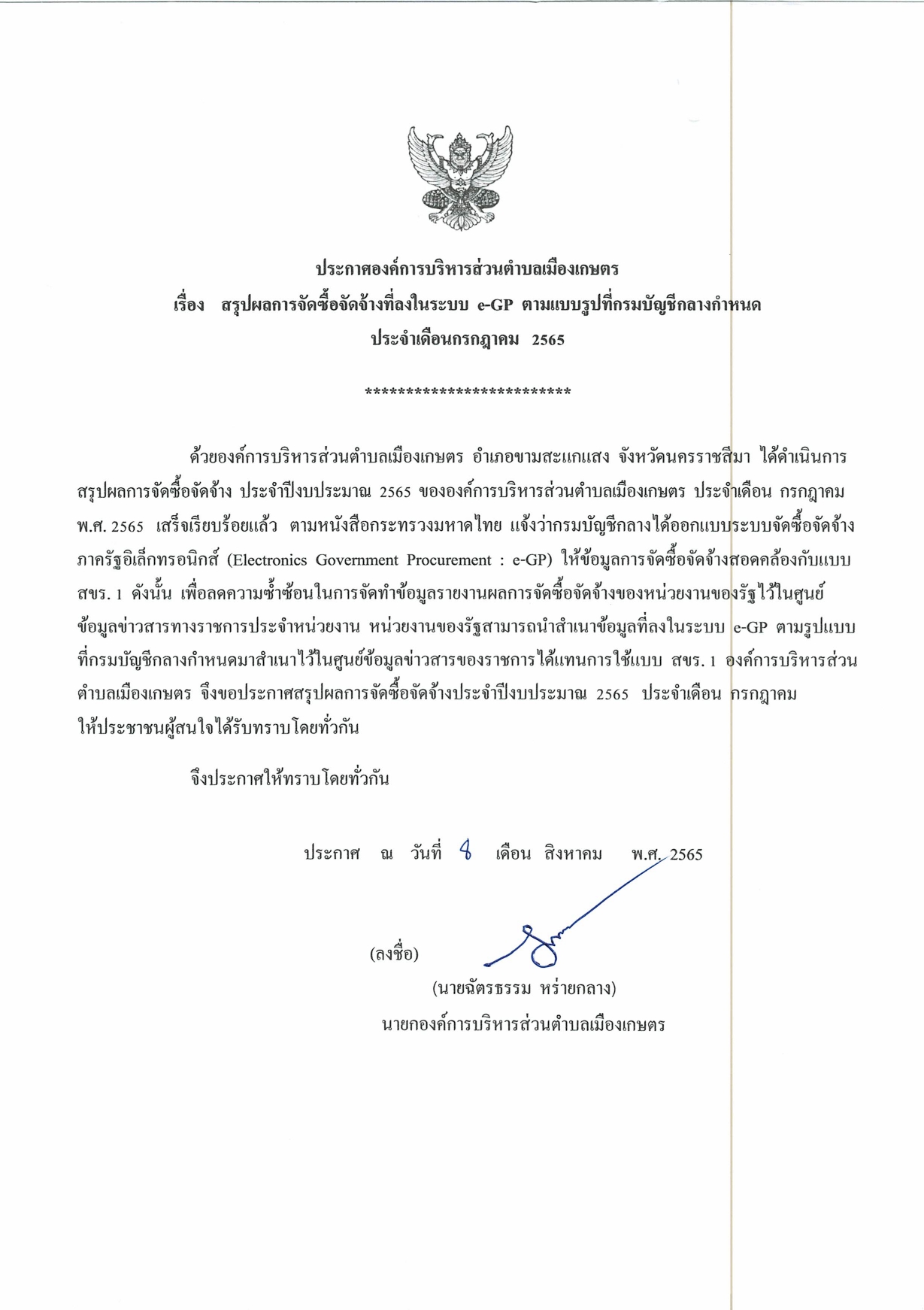 ผลการจัดซื้อจัดจ้างที่ลงระบบ e-GP ประจำเดือนกรกฎาคม พ.ศ.๒๕๖๕