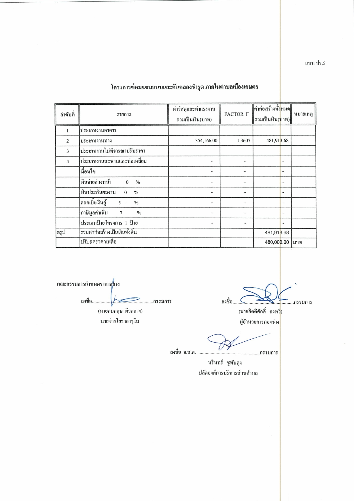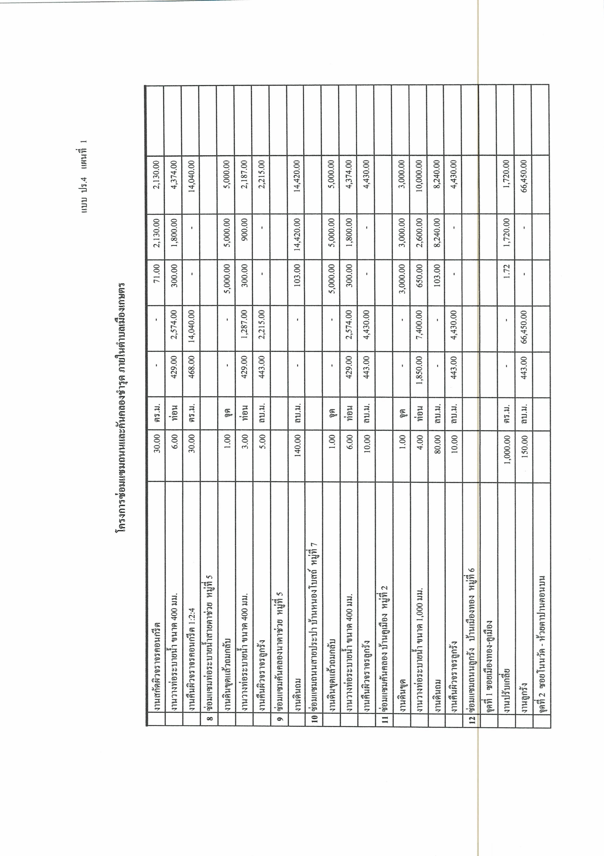 ราคากลาง โครงการซ่อมแซมถนนและคันคลองชำรุดภายในตำบลเมืองเกษตร