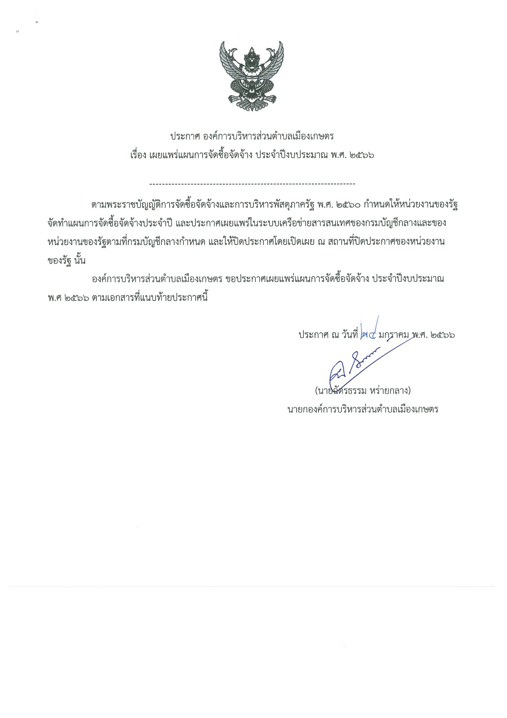 เผยแพร่แผนการจัดซื้อจัดจ้าง ประจำปีงบประมาณ 2566