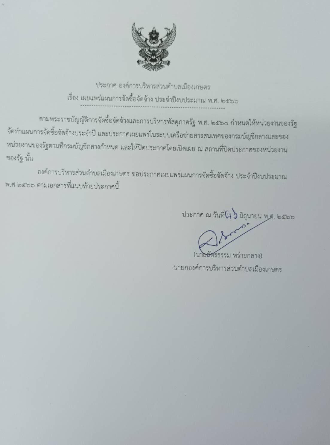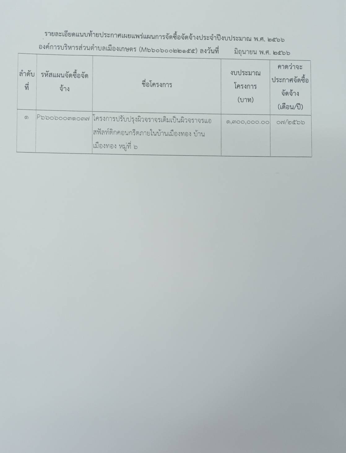 เผยแพร่แผนการจัดซื้จัดจ้าง ประจำปีงบประมาณ พ.ศ. ๒๕๖๖