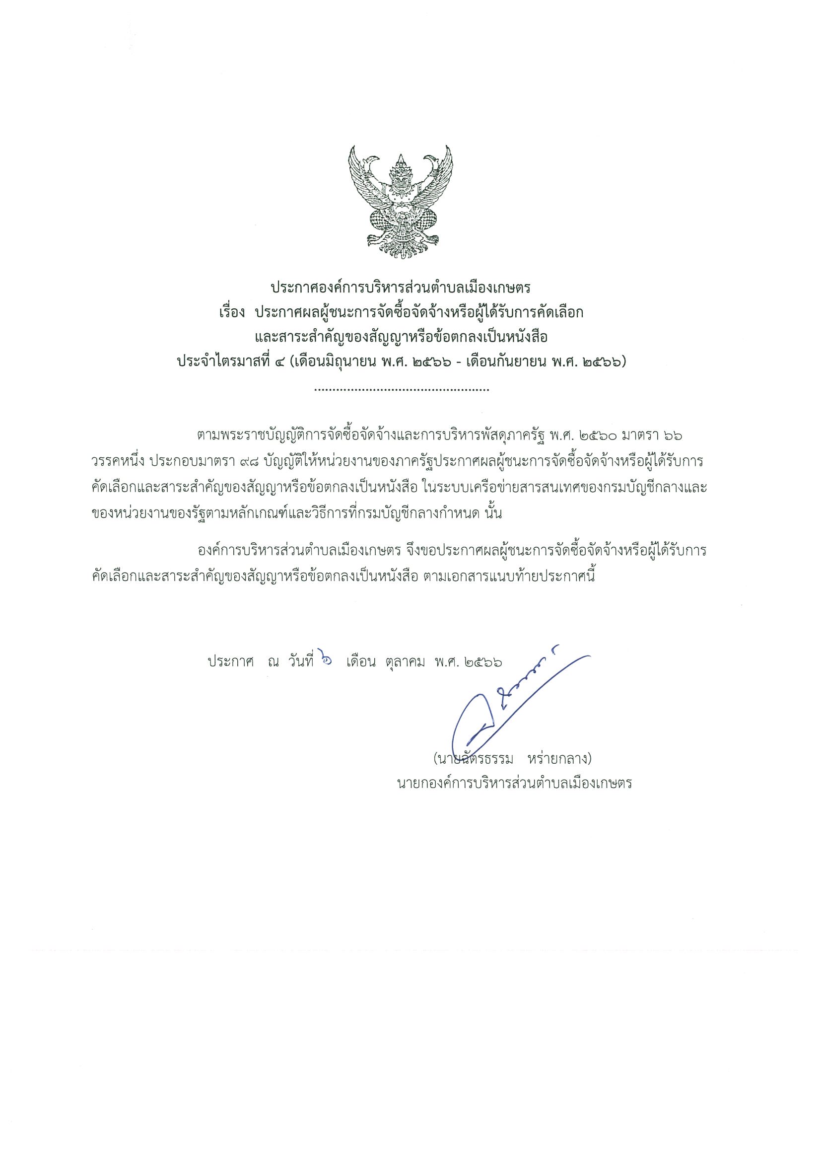 สรุปผลการจัดซื้อจัดจ้าง ประจำไตรมาสที่ 4 ปีงบประมาณ 2566