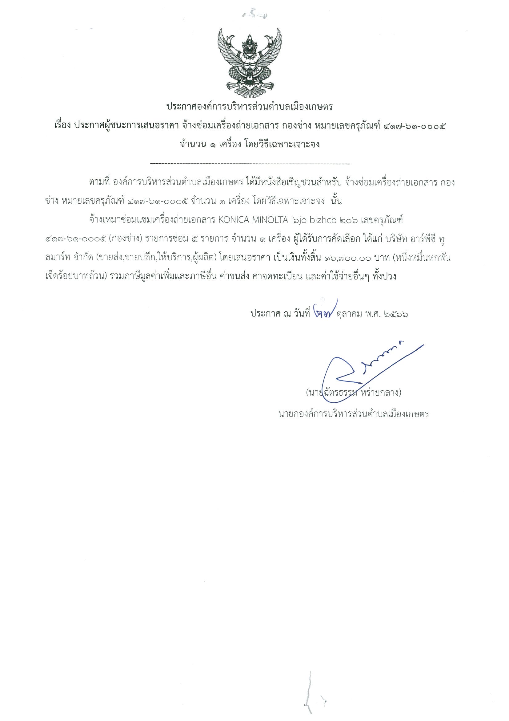 ประกาศผู้ชนะการเสนอราคา จ้างซ่อมเครื่องถ่ายเอกสาร กองช่าง