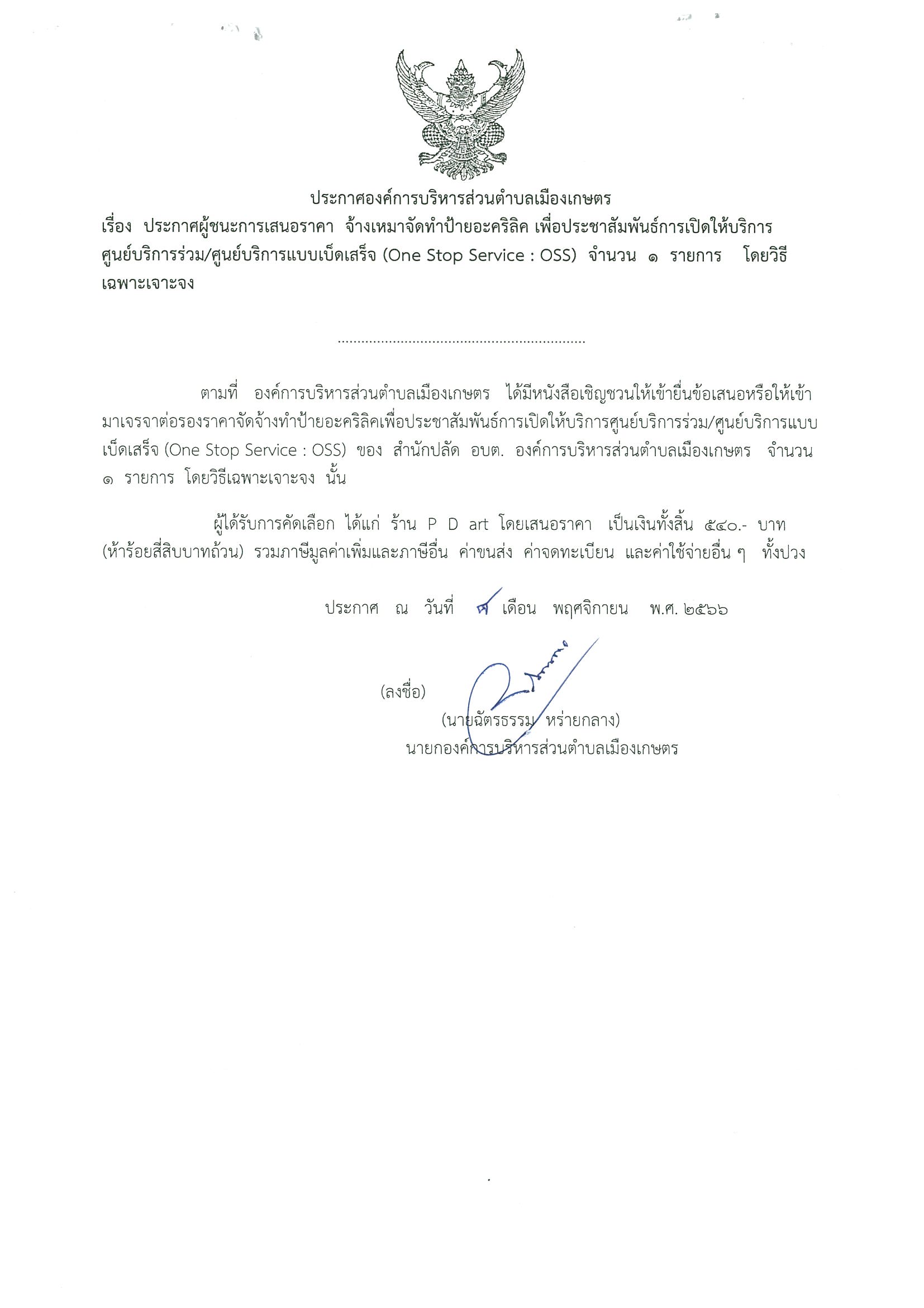 ประกาศผู้ชนะเสนอราคาจ้างเหมาจัดทำป้ายอะคริลิค OSS