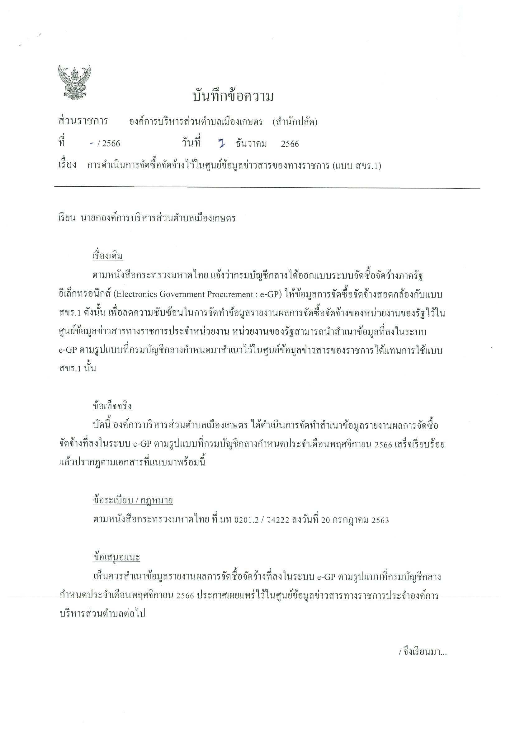 สรุปผลการจัดซื้อจัดจ้าง ประจำเดือน พฤศจิกายน พ.ศ. 2566