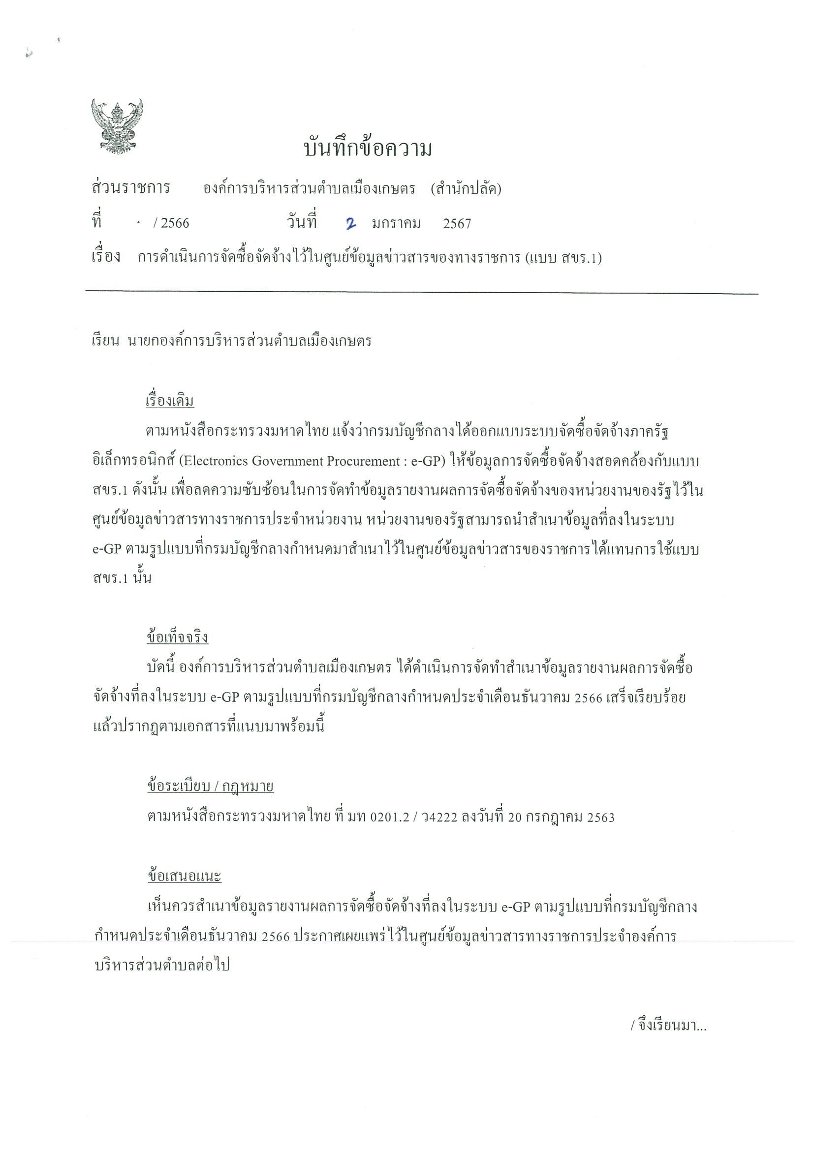 สรุปผลการจัดซื้อจัดจ้าง ประจำเดือน ธันวาคม พ.ศ. 2566