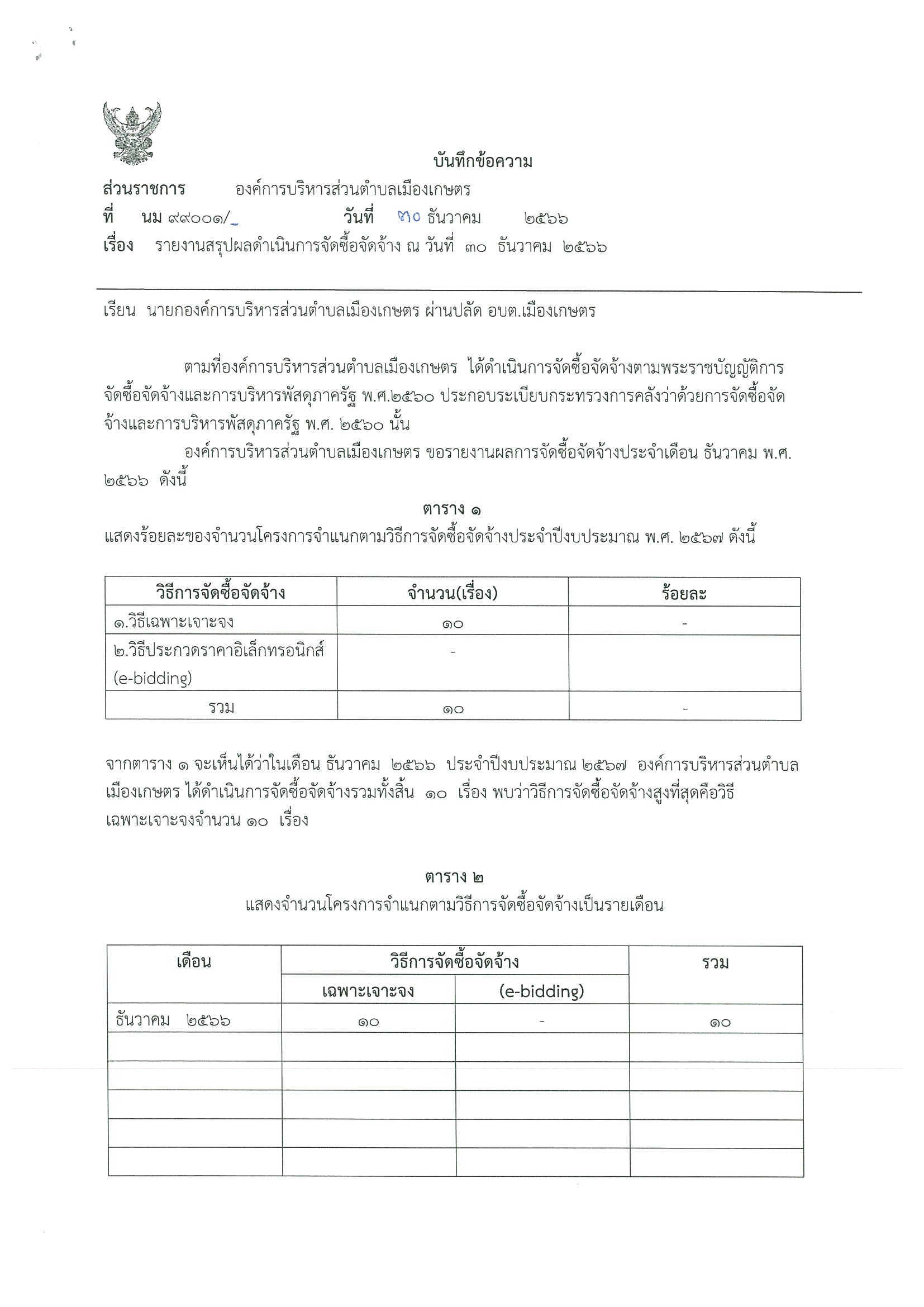 รายงานสรุปผลดำเนินการจัดซื้อจัดจ้าง ณ วันที่ 30 ธ.ค.66