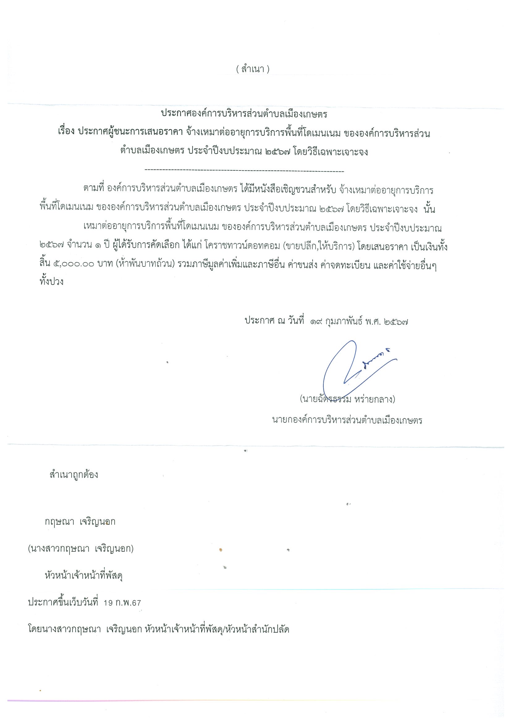 ประกาศผู้ชนะ จ้างเหมาต่ออายุการบริการพื้นที่โดเมนเนม