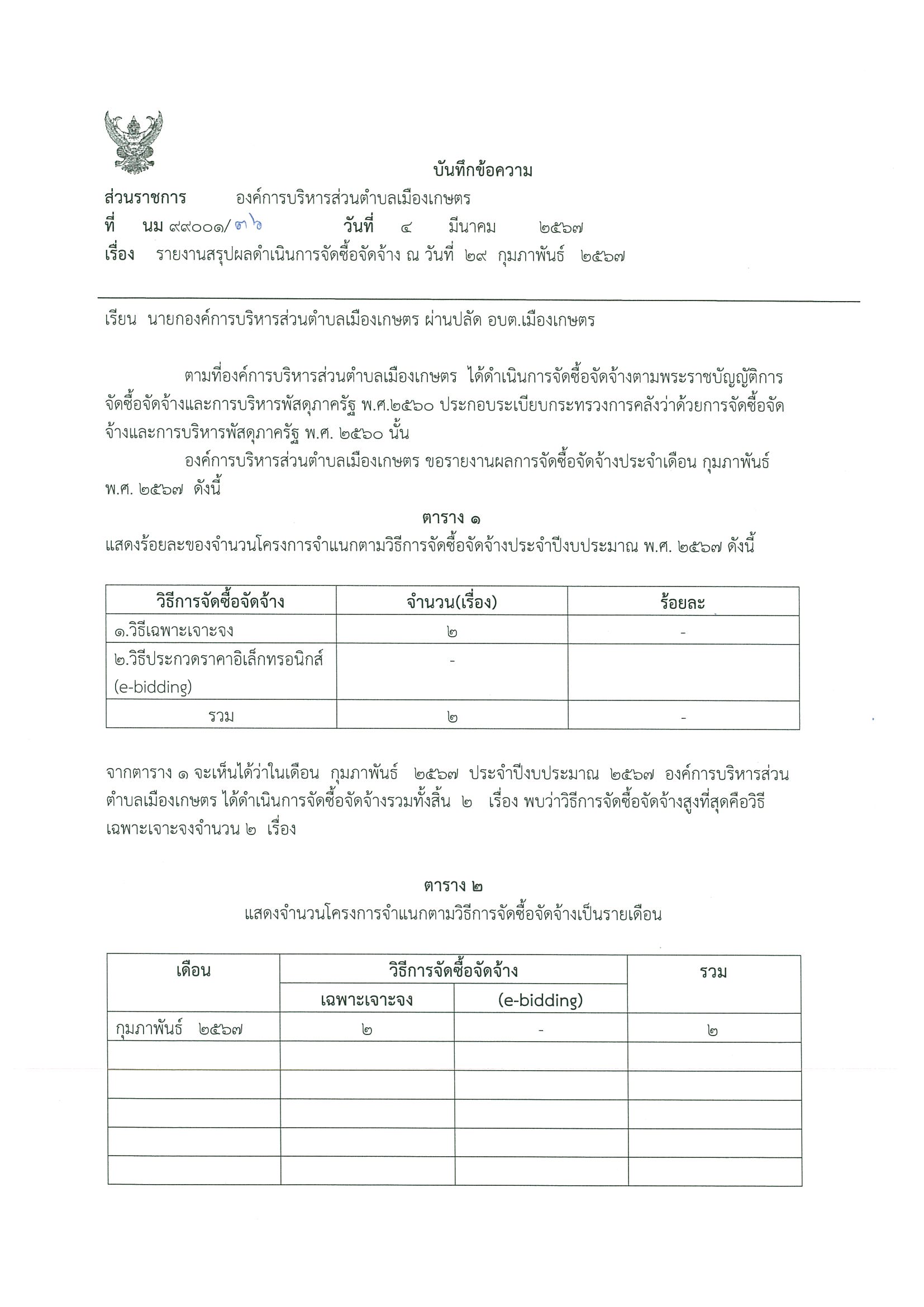 รายงานจัดซื้อ ประจำเดือน กุมภาพันธ์ 2567