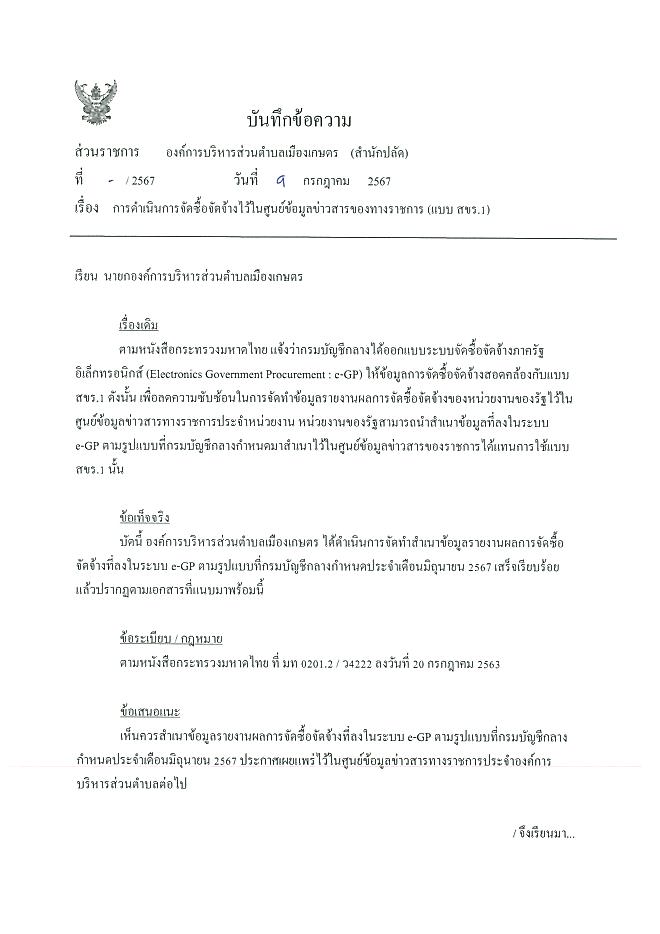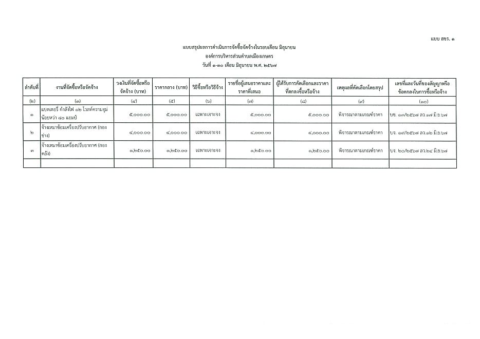 สรุปผลการจัดซื้อจัดจ้าง ประจำเดือน มิถุนายน พ.ศ. 2567