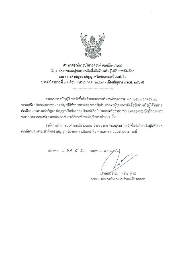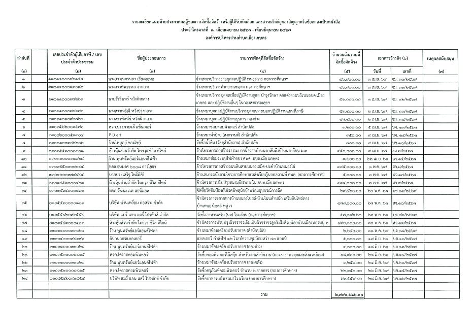 สรุปผลการจัดซื้อจัดจ้าง ประจำไตรมาสที่ 3 ปีงบประมาณ 2567