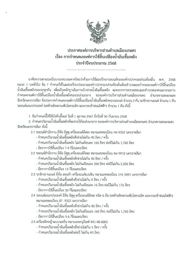 กำหนดเกณฑ์การใช้สิ้นเปลืองน้ำมันเชื้อเพลิง ประจำปีงบประมาณ 2568