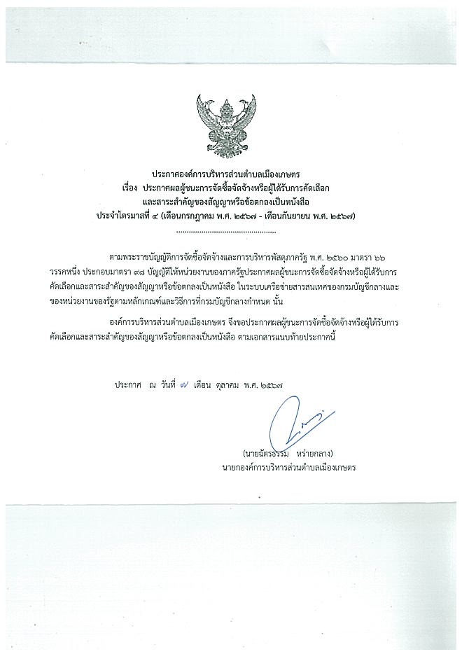 สรุปผลการจัดซื้อจัดจ้าง ประจำไตรมาสที่ 4 ปีงบประมาณ 2567