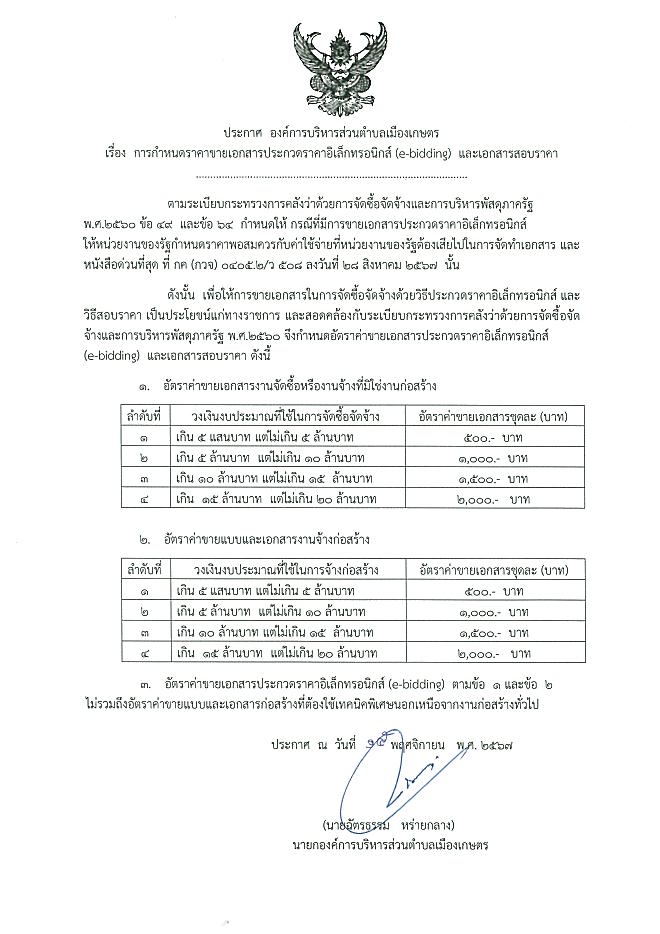 การกำหนดราคาขายเอกสารประกวดราคาอิเล็กทรอนิกส์ (e-bidding) และเอกสารสอบราคา