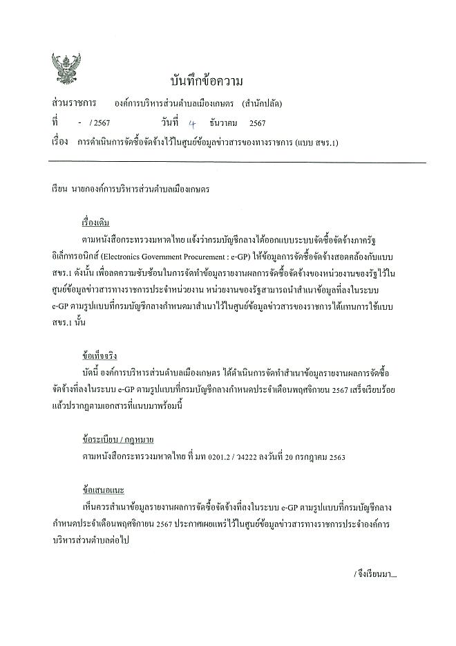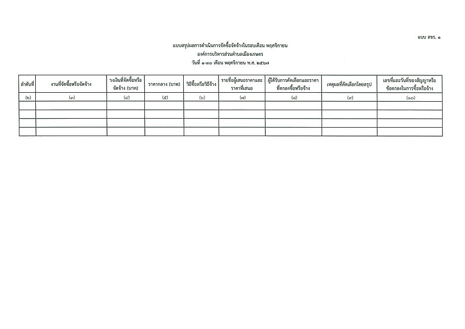 สรุปผลการจัดซื้อจัดจ้าง ประจำเดือน พฤศจิกายน พ.ศ. 2567