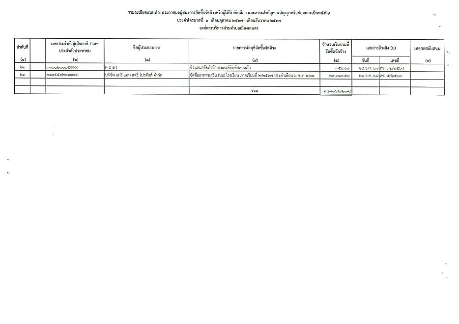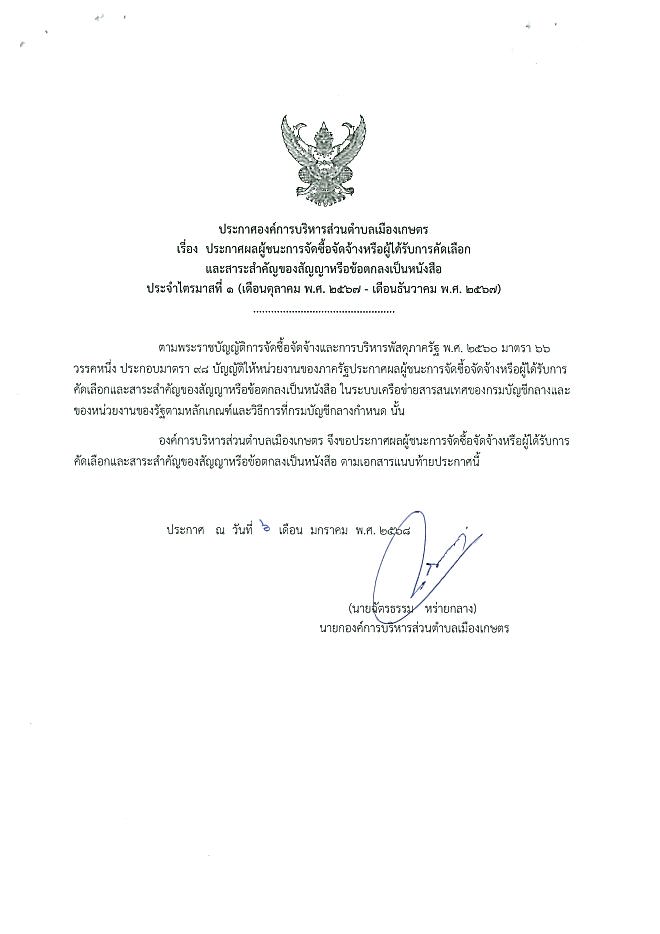 สรุปผลการจัดซื้อจัดจ้าง ประจำไตรมาสที่ 1 ปีงบประมาณ 2568