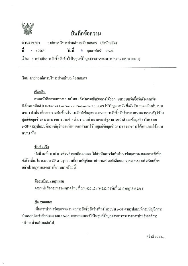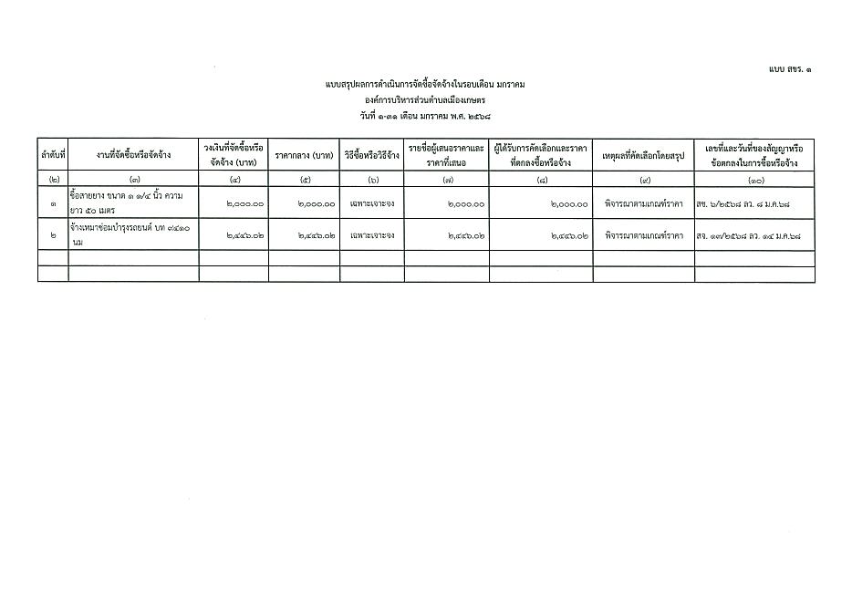 สรุปผลการจัดซื้อจัดจ้าง ประจำเดือน มกราคม พ.ศ. 2568
