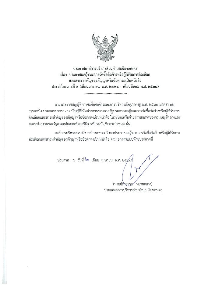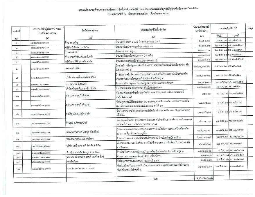 สรุปผลการจัดซื้อจัดจ้าง ประจำไตรมาสที่ 2 ปีงบประมาณ 2568