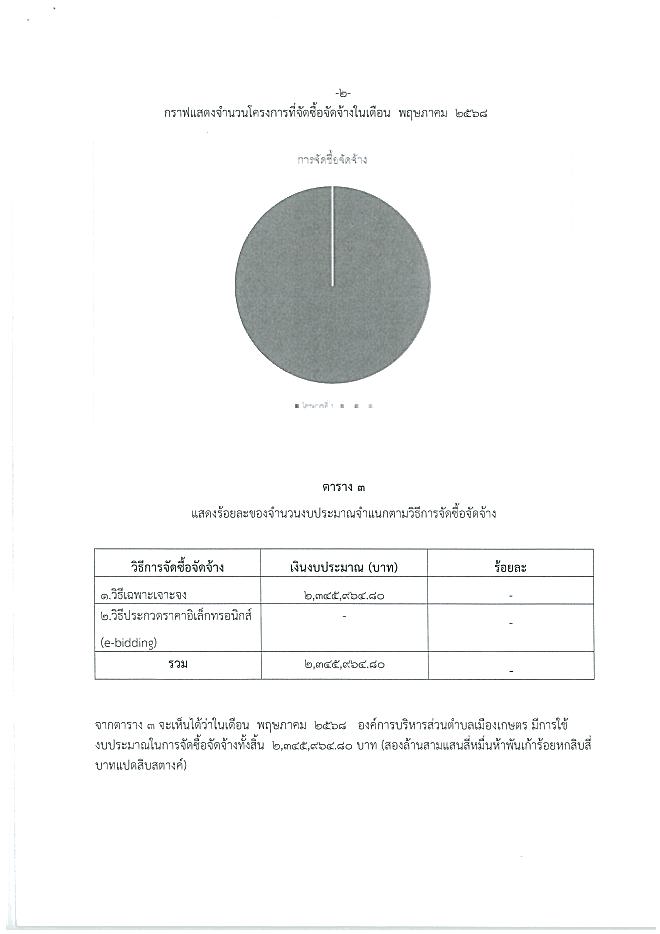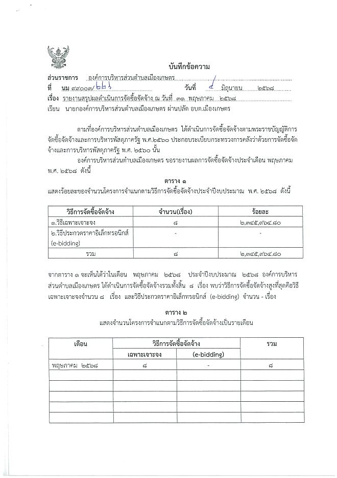 รายงานสรุปผลดำเนินการจัดซื้อจัดจ้าง ณ วันที่ 31 พฤษภาคม 2568