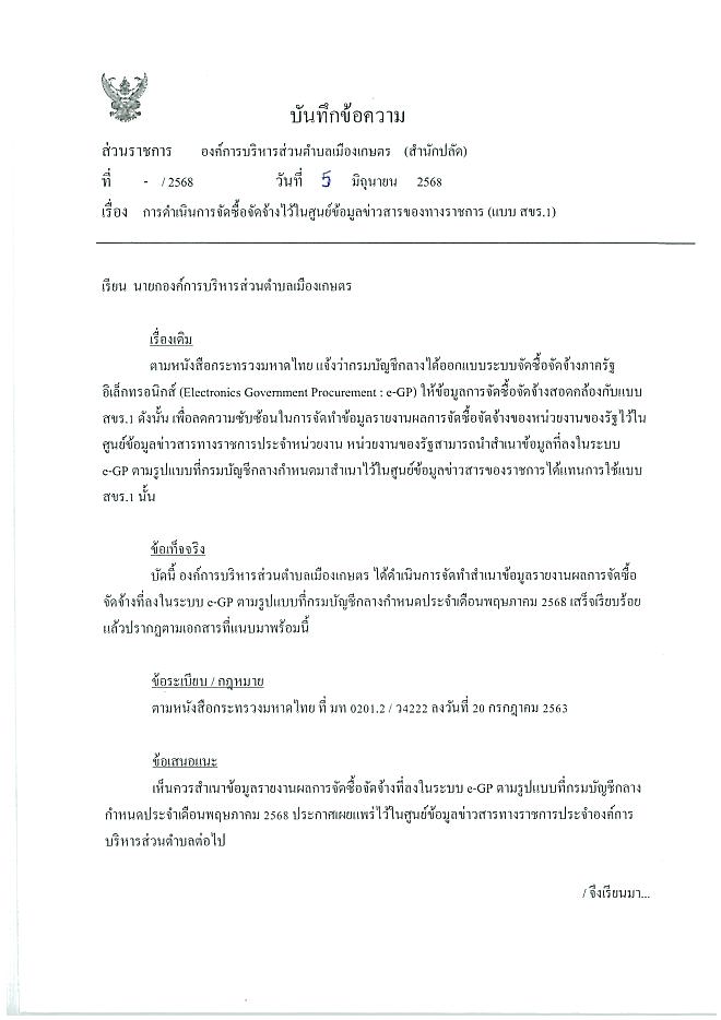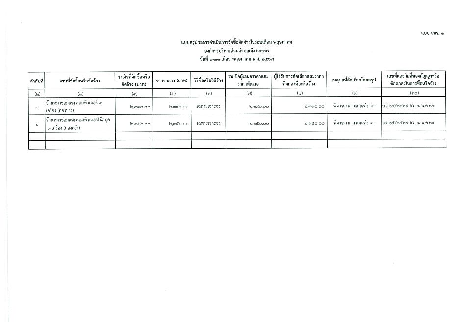 สรุปผลการจัดซื้อจัดจ้าง ประจำเดือน พฤษภาคม พ.ศ. 2568