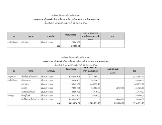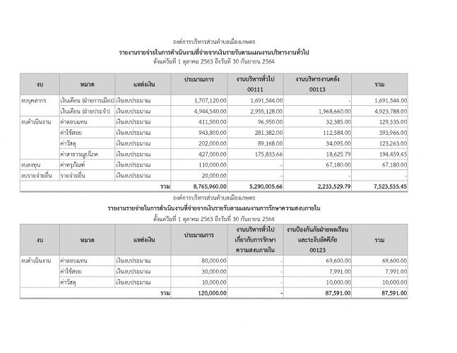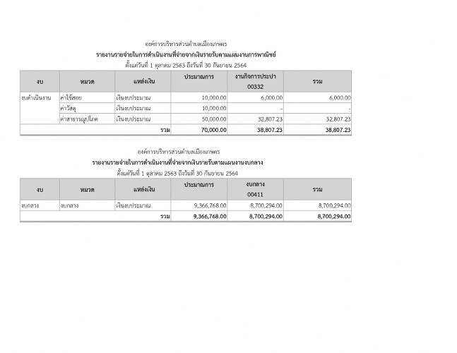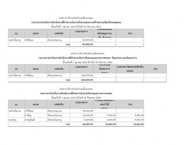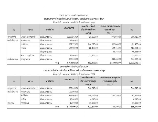 รายงานผลการใช้จ่ายงบประมาณประจำปี พ.ศ. 2564
