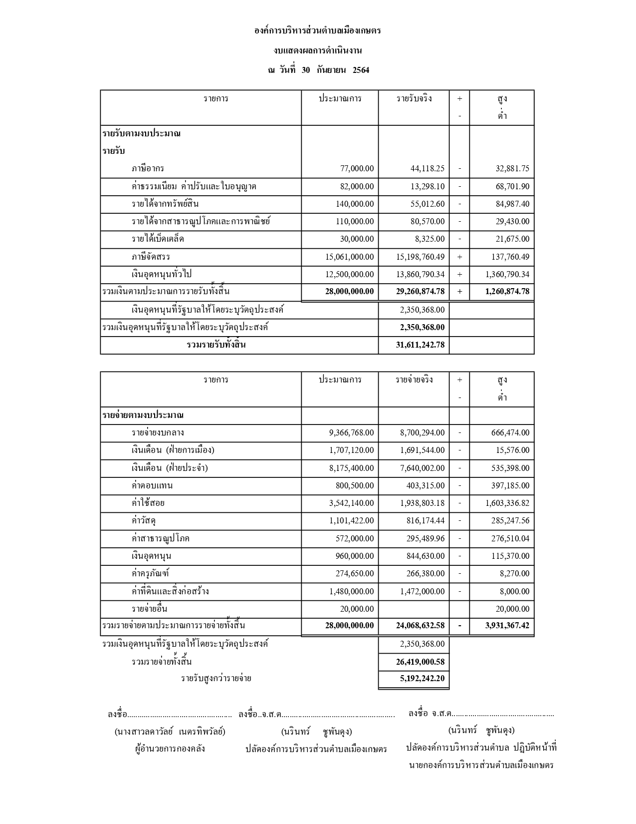 รายงานรายรับ รายจ่าย ปีะจำปี 64