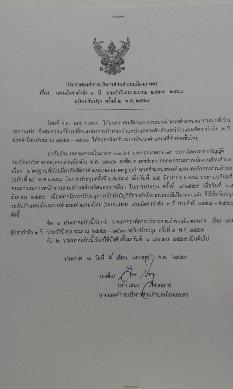 ประกาศให้ใช้แผนอัตรากำลัง 3 ปี