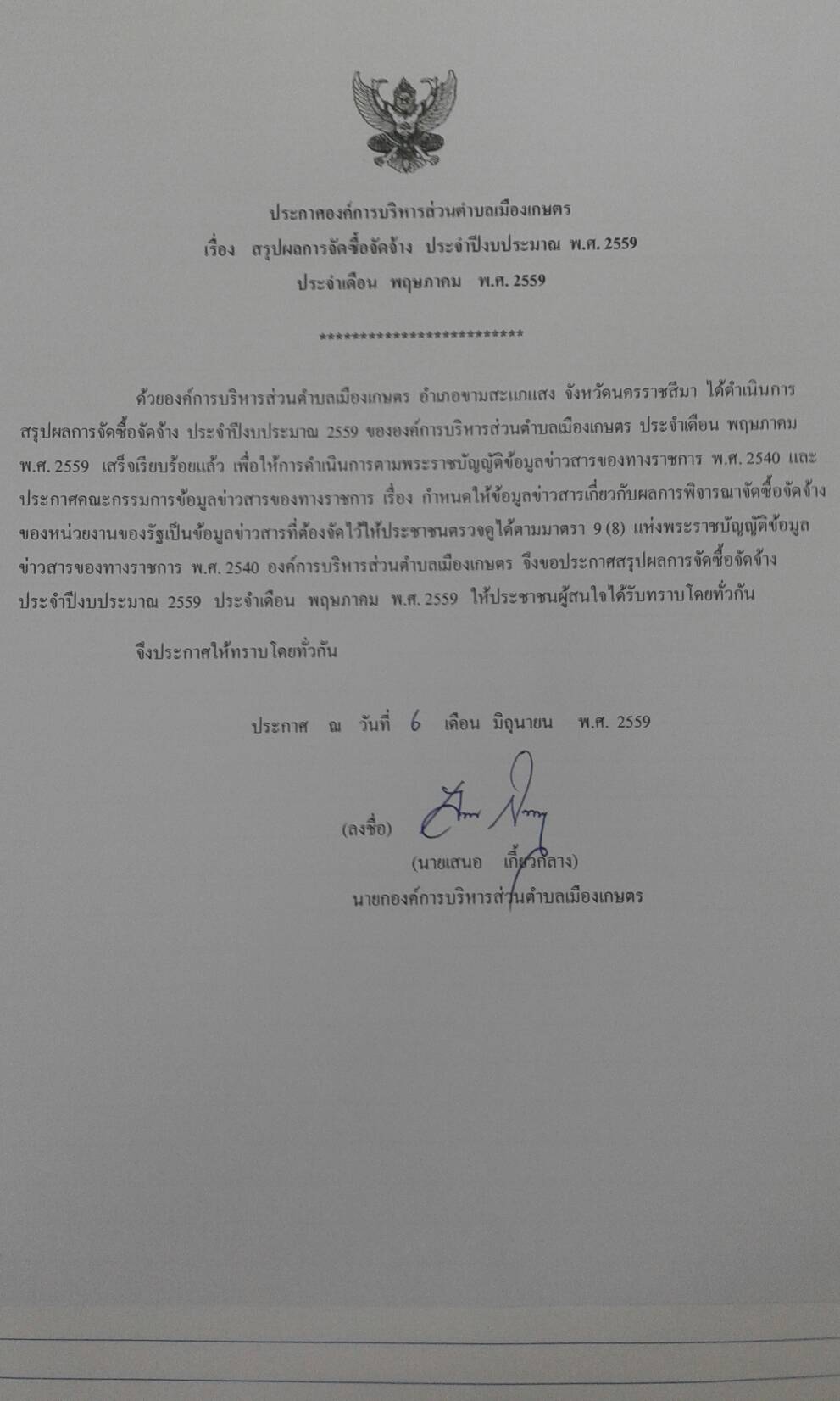 สรุปผลการจัดซื้อจัดจ้างเดือน พฤษภาคม