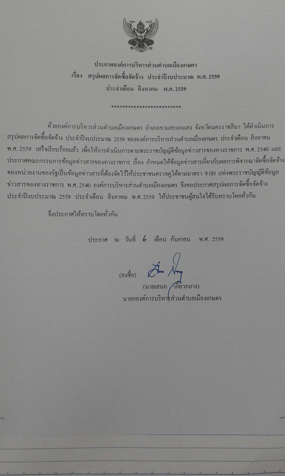 สรุปผลการจัดซื้อจัดจ้างเดือน สิงหาคม