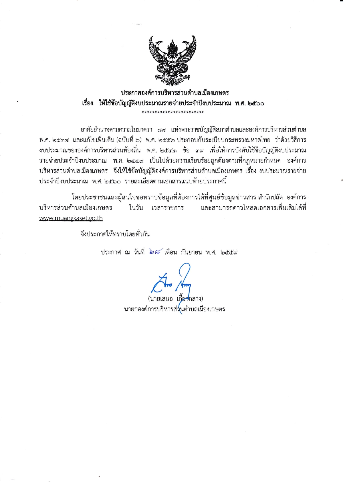 ประกาศให้ใช้ข้อบัญญัติงบประมาณรายจ่ายประจำปีงบประมาณ พ.ศ.2560