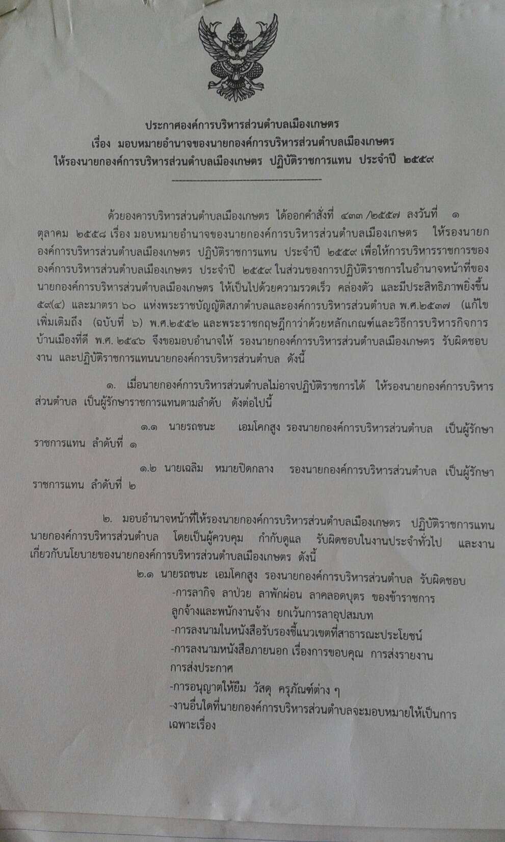 ประกาศมอบอำนาจให้รองนายก อบต.ปฏิบัติราชการแทนนายก อบต.