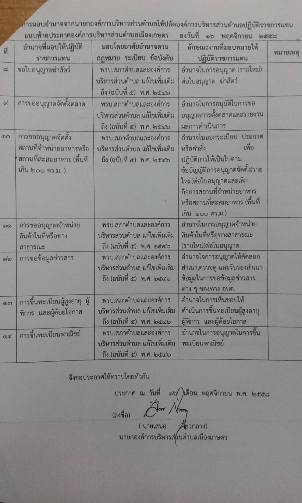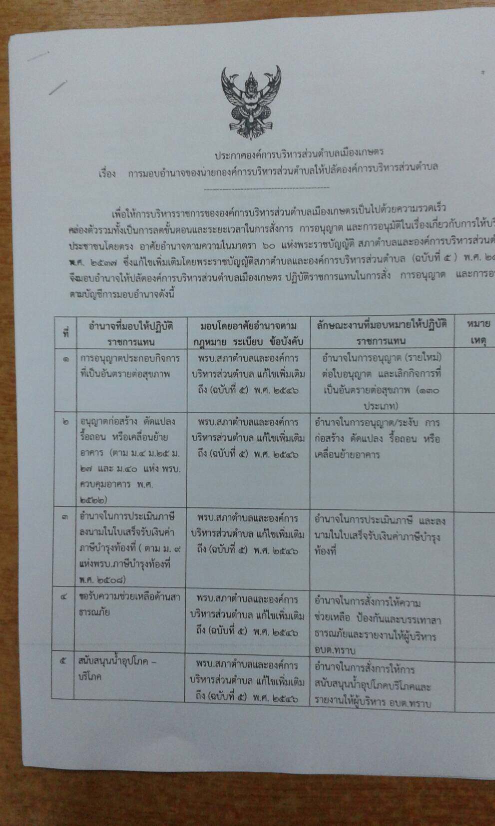 ประกาศมอบอำนาจของนายก อบต.ให้ปลัด อบต.ปฏิบัติราชการแทน