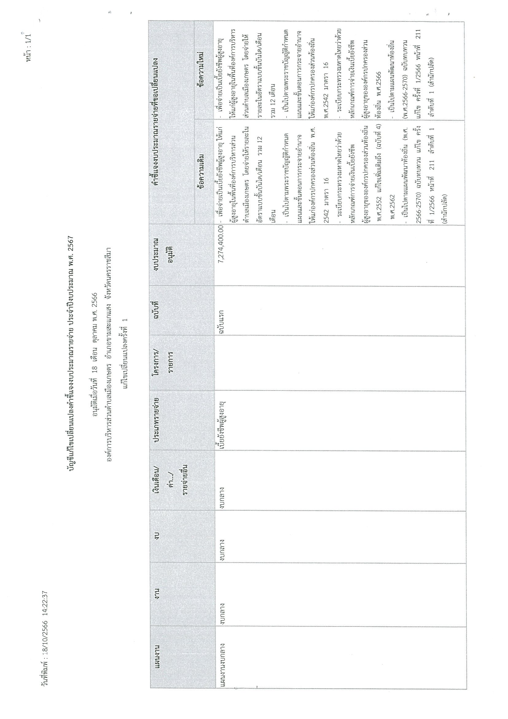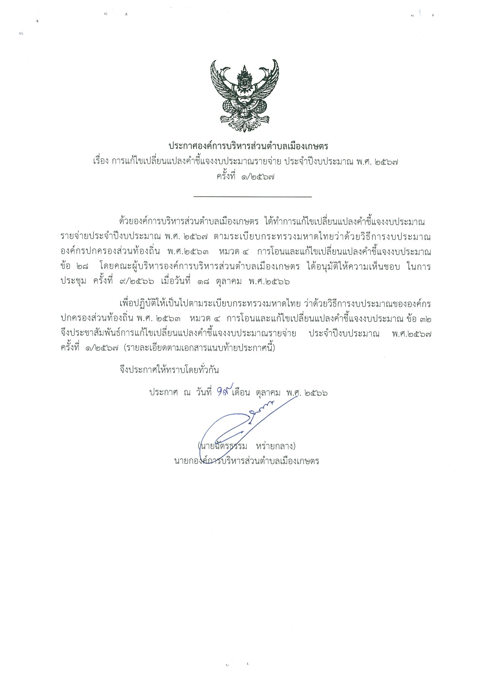 ประกาศ การแก้ไขเปลี่ยนแปลงคำชี้แจงงบประมาณรายจ่าย ปี2567 ครั้งที่ 1/2567