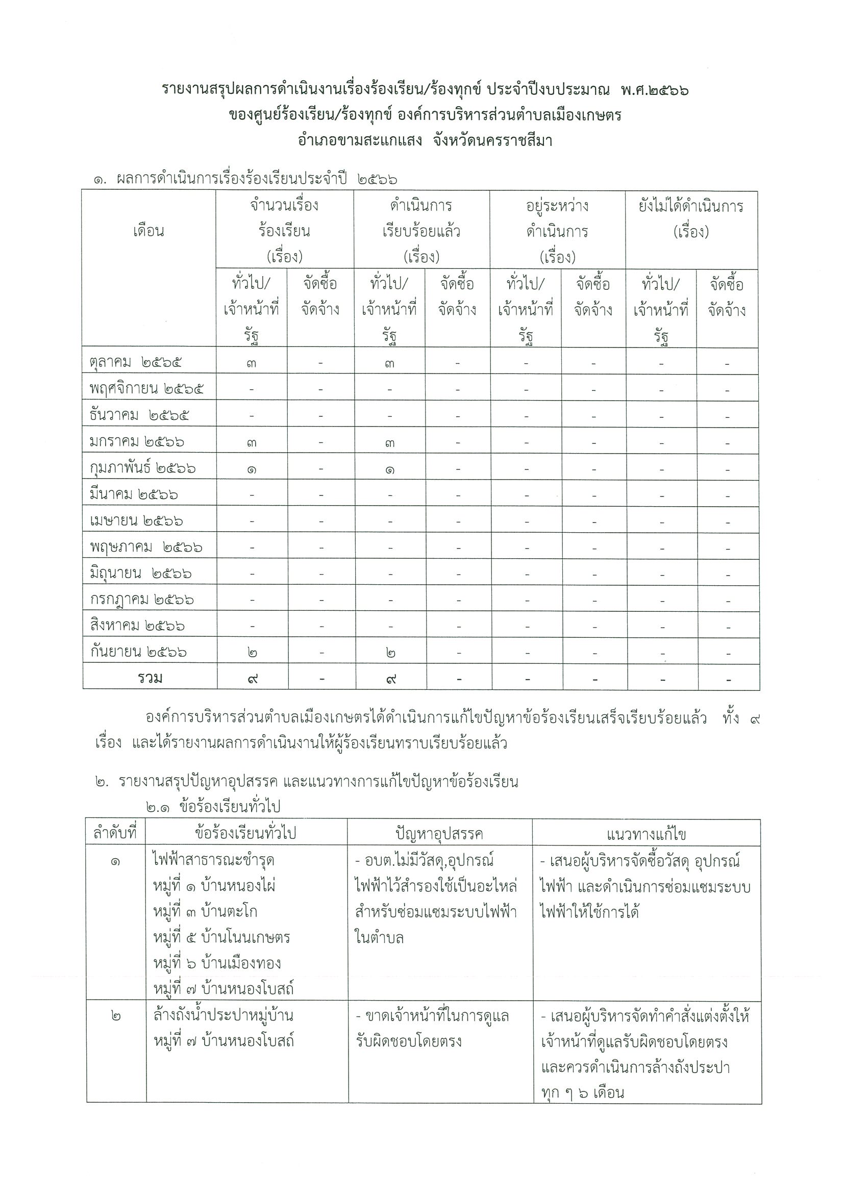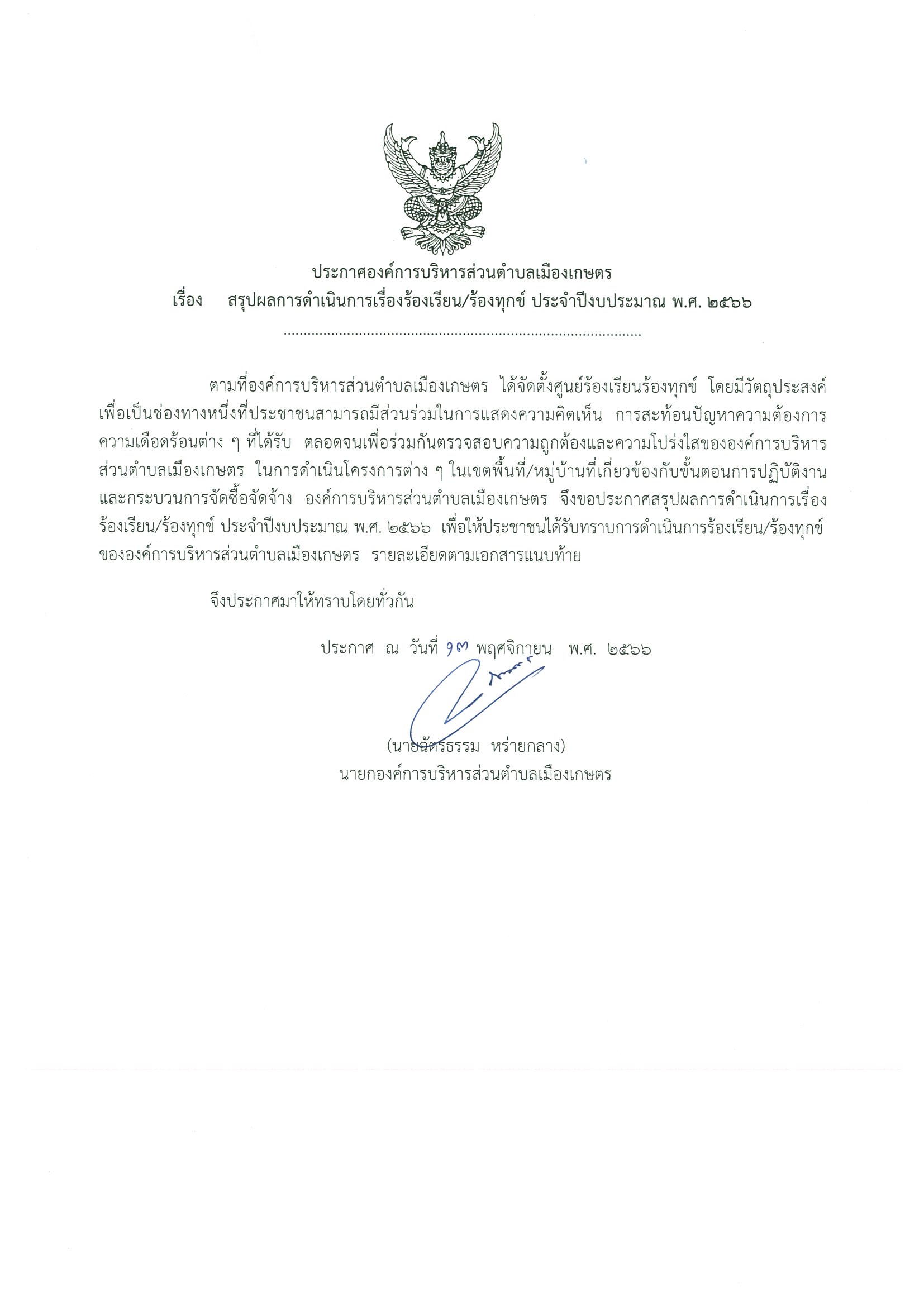 สรุปผลการดำเนินการเรื่องร้องเรียน/ร้องทุกข์ ประจำปีงบประมาณ พ.ศ.2566